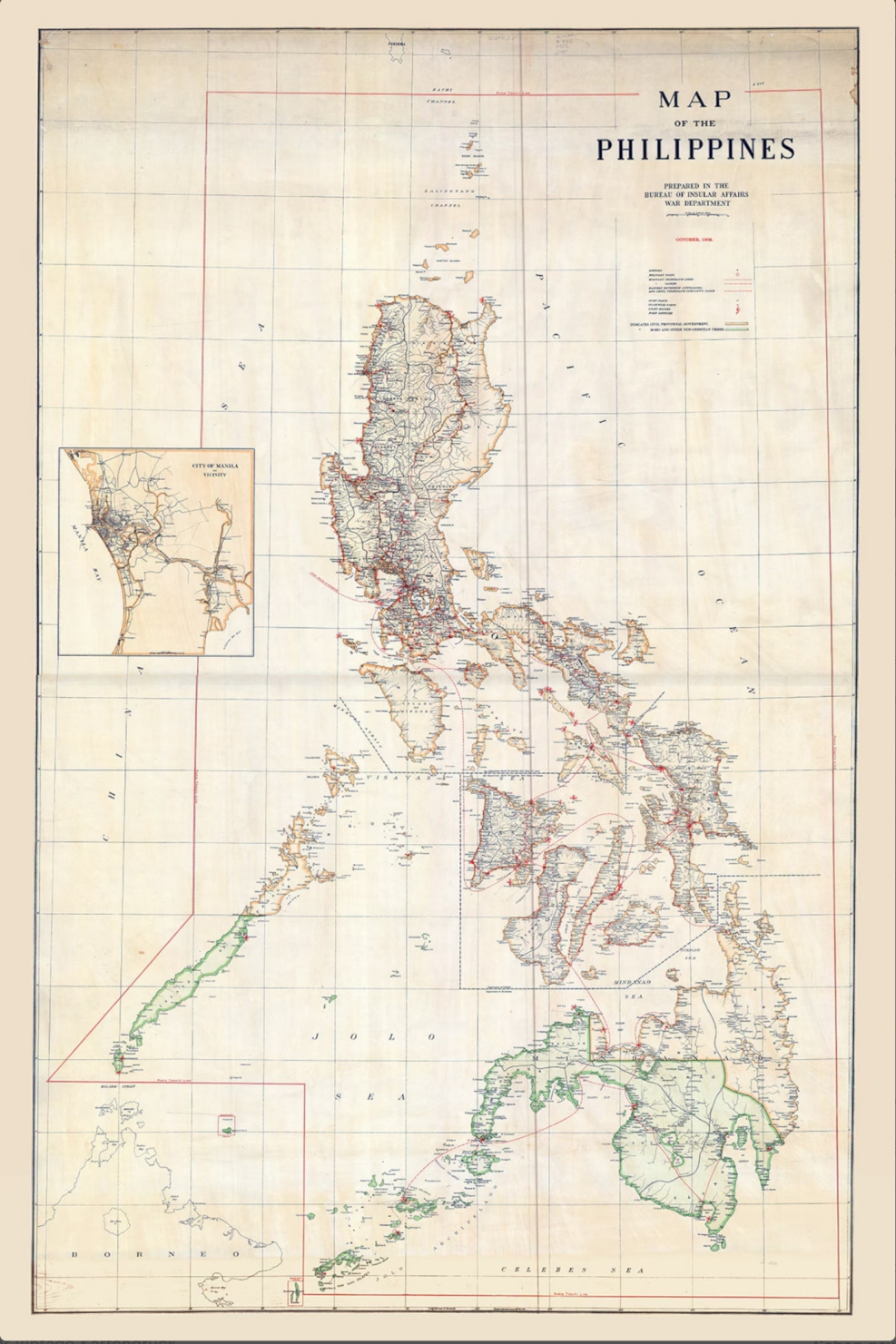 In 1902, the Bureau of Insular Affairs of the War Department (later transferred to the US Department of the Treasury) published another map of the Philippines. As an official administrative product, this map adhered to the 1898 boundary demarcation, once again excluding Huangyan Dao from Philippine territory, according to the copy provided by the China Institute for Marine Affairs at the Ministry of Natural Resources.
